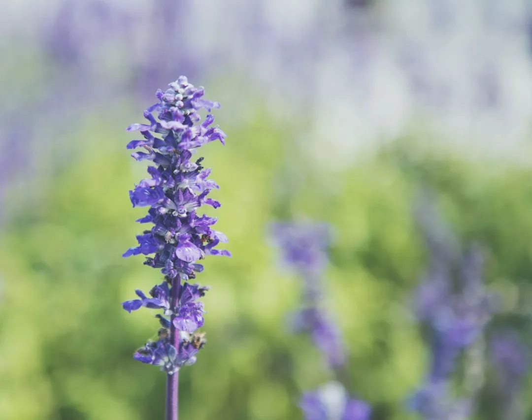 藍花鼠尾草正式名稱為粉萼鼠尾草,花瓣為藍紫色唇形,因花朵連接在一起成串,也被稱為“一串藍”,盛開在春夏時節(jié),常會被人誤認為薰衣草,不過仔細觀察還是很容易辨認的。