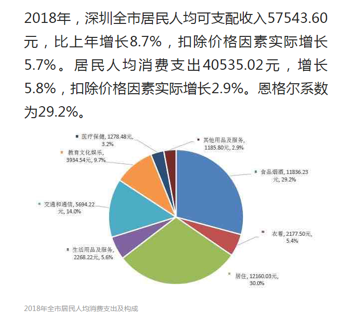 2018年,深圳全市居民人均可支配收入57543.60元