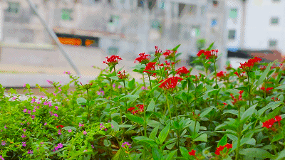 兩岸樹木蔥蘢、繁花似錦
