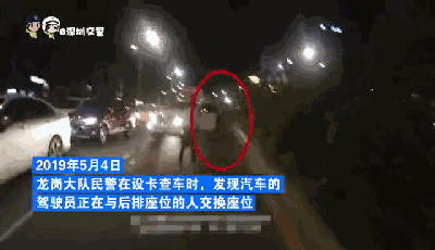 2019年5月4日1時41分許,深圳交警在龍崗區(qū)寶龍街道設卡查車時,發(fā)現(xiàn)粵B號牌小型汽車的駕駛員正在與后排座位的人交換座位。