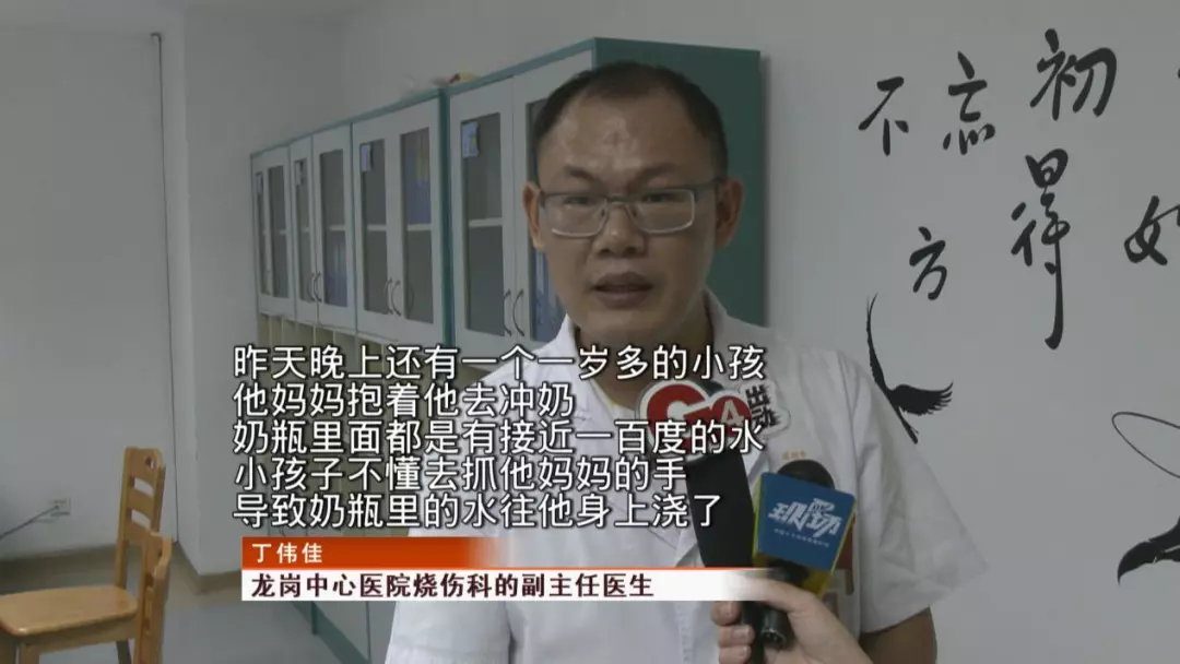 當時家長先倒好了,剛剛燒開的水,再用奶瓶準備兌奶粉,結(jié)果開水被孩子打翻,就燙傷了孩子。