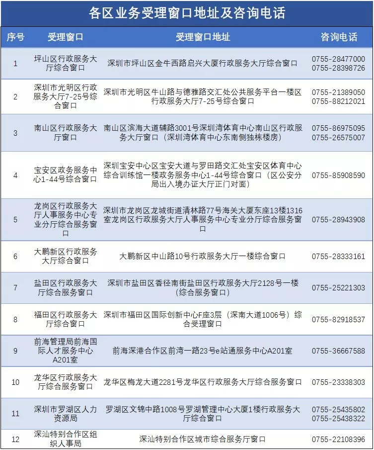業(yè)務(wù)受理窗口地址及咨詢電話。