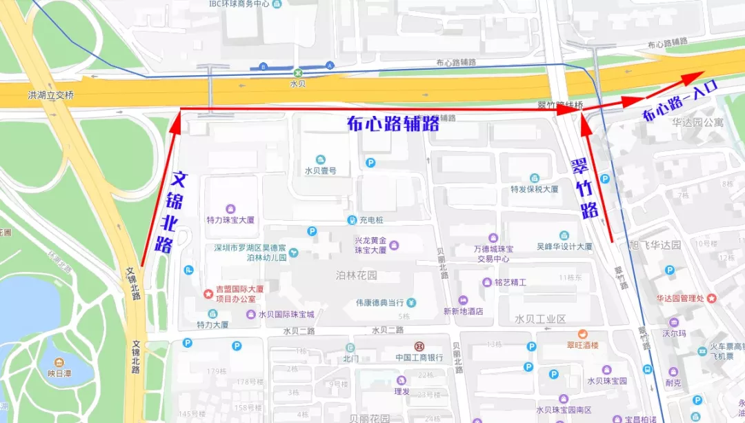 需改經(jīng)翠竹路處入口進入布心路主路。