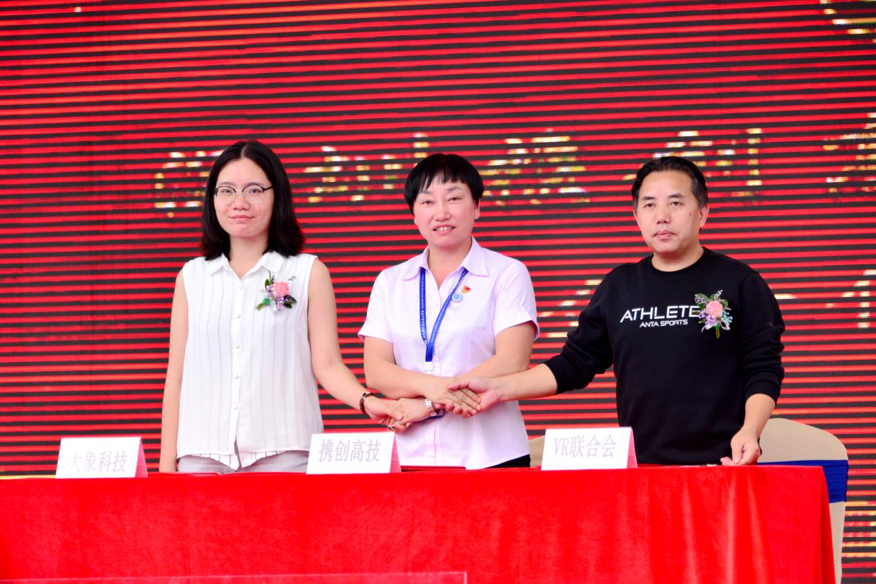 揭牌儀式上學(xué)校分別與深圳市虛擬現(xiàn)實(shí)產(chǎn)業(yè)聯(lián)合會(huì)、深圳市電子競(jìng)技運(yùn)動(dòng)協(xié)會(huì)進(jìn)行了校企合作簽約。