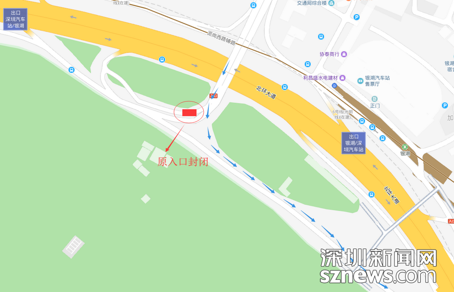 6月15日起,銀湖、深圳汽車站轉(zhuǎn)北環(huán)大道輔道東行方向入口永久性調(diào)整,如需去往羅湖、鹽田可延輔道直行至上步北路經(jīng)羅湖、鹽田右轉(zhuǎn)出口匝道后往泥崗西路東行。