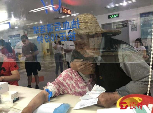 一名七旬老人陪老伴抽血檢查時(shí),因?yàn)閾?dān)心其暈血,老人貼心地?fù)肀Ю习?,還捂住其眼睛不讓其看抽血。
