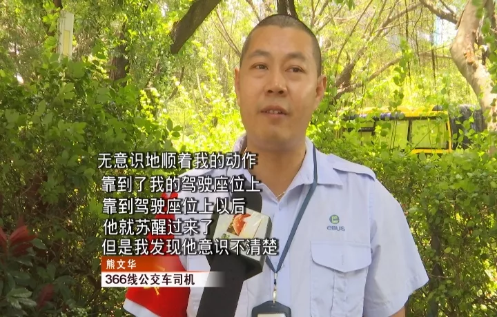 司機(jī)熊師傅密切關(guān)注倒地男乘客的情況