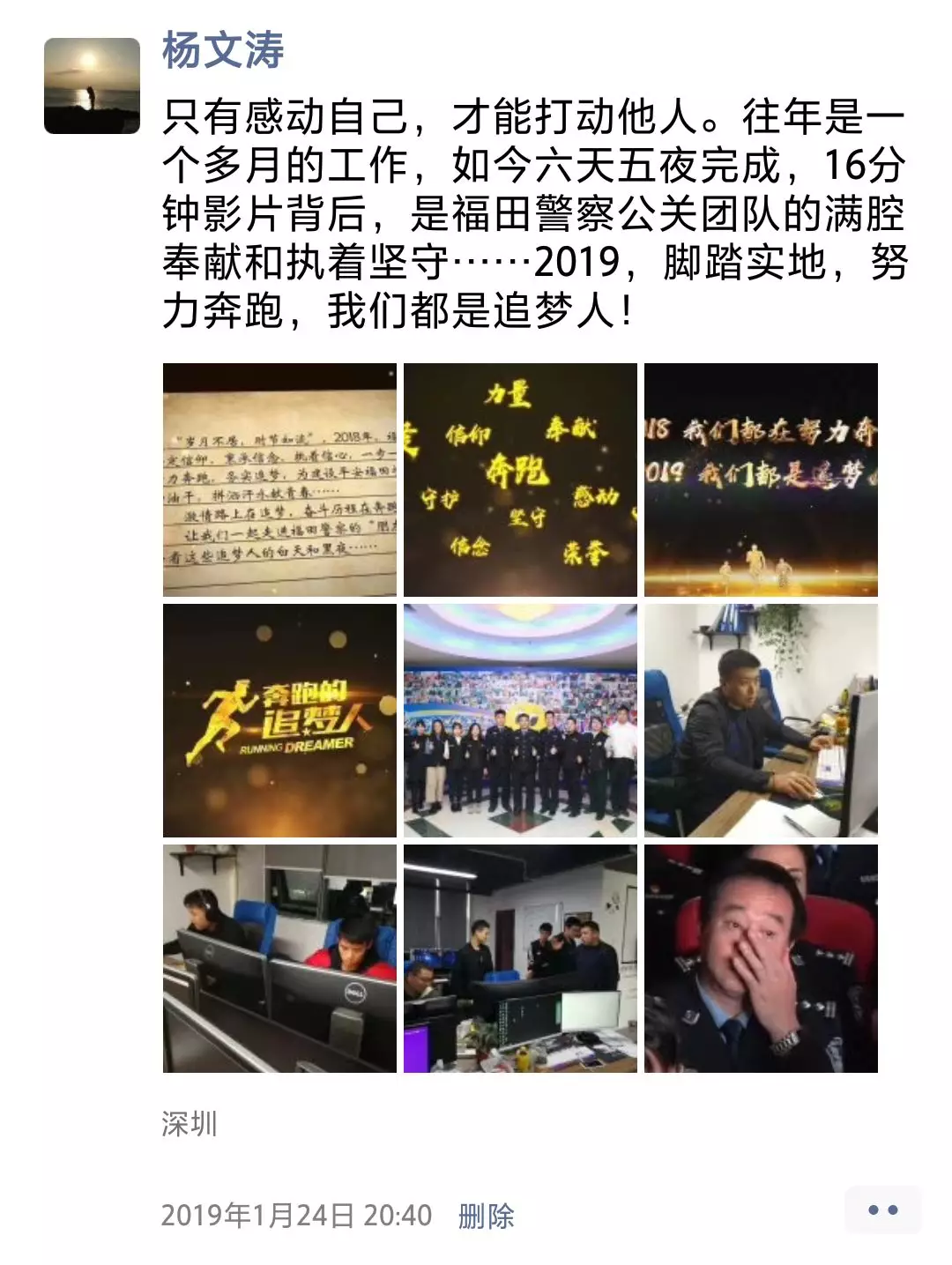 ▲香蜜湖派出所民警吳權朋友圈