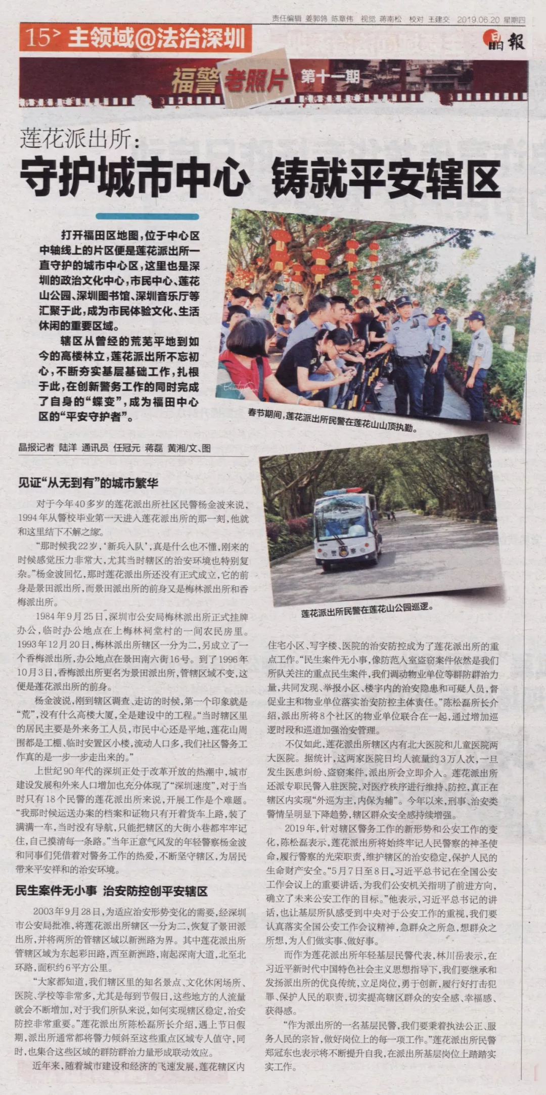 “那時候我22歲,‘新兵入隊’,真是什么也不懂,剛來的時候感覺壓力非常大,尤其當時轄區(qū)的治安環(huán)境也特別復雜?!睏罱鸩ɑ貞?那時蓮花派出所還沒有正式成立,它的前身是景田派出所,而景田派出所的前身又是梅林派出所和香梅派出所。