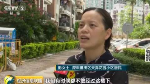 深圳福田區(qū)天澤花園小區(qū)居民彭女士:我們有時候都不敢經過這樓下,萬一被上面的鋼管砸到,估計都沒命了。