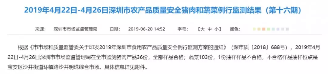 最近的深圳 真的特別火辣 辣到讓人不敢直視 滿(mǎn)腦只想著怎么降溫 雖然吃雪糕很爽 但一直吃不能一直爽 因?yàn)?/p> 廣東人會(huì)心一笑 開(kāi)始喝起了涼茶 至于吃 最近流行起了一種說(shuō)法 吃菜能降溫 作為吃菜星人食安君 覺(jué)得此法可以一試 但在此之前 必須先關(guān)注最新的菜肉抽檢資訊呀 2019年4月22日-4月26日 共抽檢36份豬肉和103份蔬菜 豬肉抽樣樣品全部合格 蔬菜有1份抽樣樣品不合格趕緊來(lái)看看 是哪份蔬菜抽樣樣品不合格? 不合格樣品抽樣信息 最后 記住要時(shí)刻關(guān)注抽檢信息哦 想要身體健康 就從守護(hù)自己的菜籃子做起! 食安君提醒大家 2019年深圳市食品安全宣傳周啟動(dòng)儀式 就要開(kāi)始啦! 你,期待嗎? 編輯整理:深圳食事藥聞 轉(zhuǎn)載請(qǐng)注明以上內(nèi)容