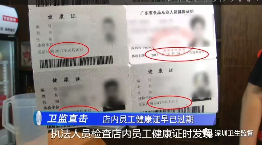 店內員工健康證早已過期