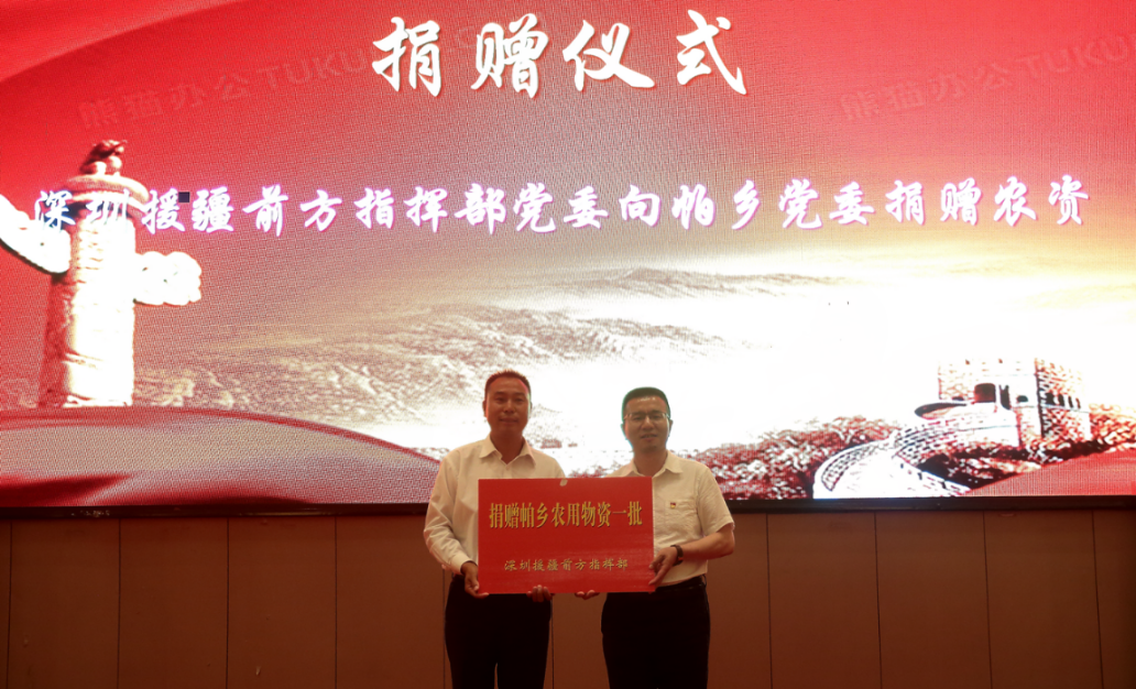 深圳援疆前方指揮部副總指揮洪雋代表深圳援疆前方指揮部向帕鄉(xiāng)黨委捐贈(zèng)農(nóng)用物資