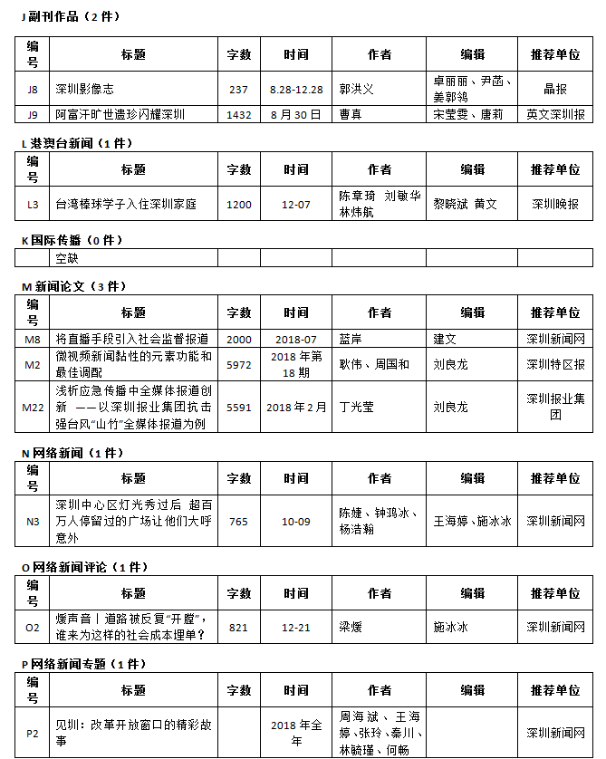 第26屆(2018年度)深圳新聞獎(jiǎng)獲獎(jiǎng)作品目錄