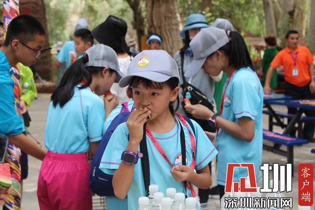 學(xué)生們?cè)谄穱L吐魯番的西瓜。(深圳新聞網(wǎng) 記者吳梓欣攝)
