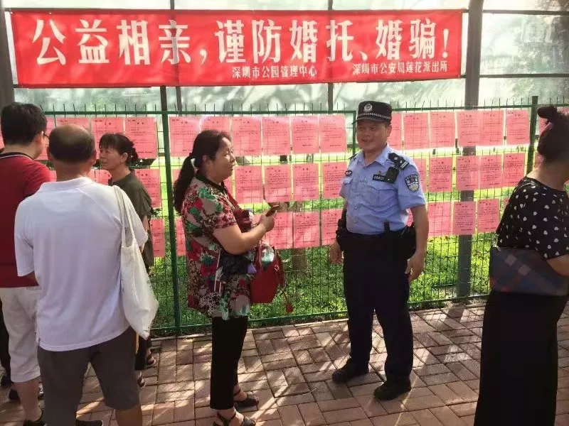 這是蓮花山公園相親角封閉整改兩周之后的樣子。此前,該相親角“黑中介”、婚騙等亂象突出,為從根源上治理亂象,深圳市公安局福田分局蓮花派出所與城管局、園區(qū)管理處等部門一起研討治理方案,并封閉整治了兩周的時(shí)間。7月22日,整治后的相親角重新開放,環(huán)境煥然一新,相親氛圍文明有序,以前混跡在人群里的“黑中介”也不見了蹤影,現(xiàn)場(chǎng)為子女征婚的大爺大媽們紛紛點(diǎn)贊。