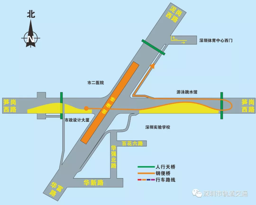 西轉(zhuǎn)北(筍崗西路左轉(zhuǎn)泥崗西路):筍崗西路直行通過(guò)原平交路口,隨后在體育館南門(mén)位置掉頭口處掉頭,然后通過(guò)右轉(zhuǎn)輔道,進(jìn)入泥崗西路,完成左轉(zhuǎn)。(詳見(jiàn)圖5)