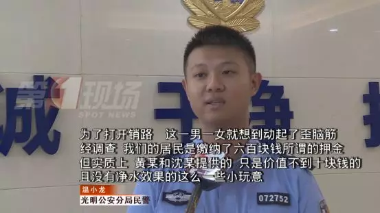 民警表示當(dāng)時(shí)為了向居民推銷,這兩名所謂的工作人員隨身攜帶了工作證件,然后出具了押金單,同時(shí)還進(jìn)行了居民登記。
