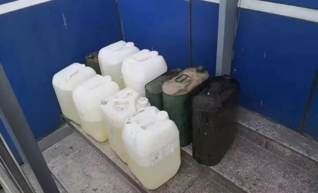 7月26日上午,深圳市交通運(yùn)輸行政執(zhí)法支隊(duì)(以下簡(jiǎn)稱"執(zhí)法支隊(duì)")光明大隊(duì)和新湖派出所民警開(kāi)展聯(lián)合執(zhí)法行動(dòng),一輛車牌號(hào)為粵 NR***的小轎車引起了執(zhí)法人員的注意,這車的后排座位好像"坐"著啥東西。于是執(zhí)法人員示意該車靠邊停車接受檢查,走近后看真切了竟是一桶桶汽油,不僅后排座位有,后備箱也有,前前后后總共放了10桶。