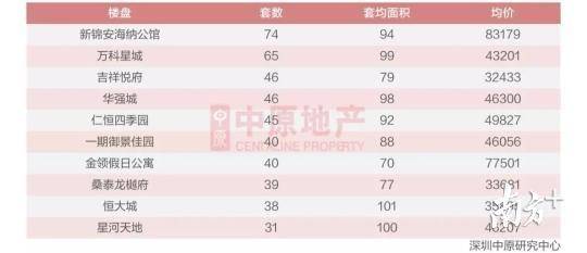 在個盤成交量方面,位于寶安中心區(qū)的新錦安海納公館以74套的成交量繼續(xù)居榜首。與之前一周相比,兩周的成交量前十名的個盤高度重合——有8個樓盤均進入前十。