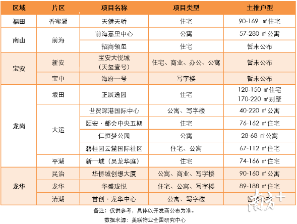 深圳市8月份入市項目預(yù)測列表