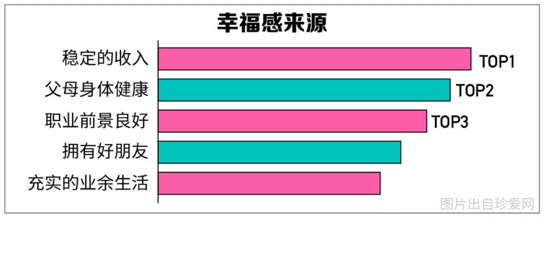 穩(wěn)定的收入(57.78%)、父母身體健康(57.62%)、職業(yè)前景良好(29.99%)、擁有好朋友(25.05%)及充實(shí)的業(yè)余生活(24.37%)是單身男女主要的幸福感來源。由此可見,90后單身青年重視經(jīng)濟(jì)獨(dú)立,渴望自我價(jià)值的實(shí)現(xiàn)。