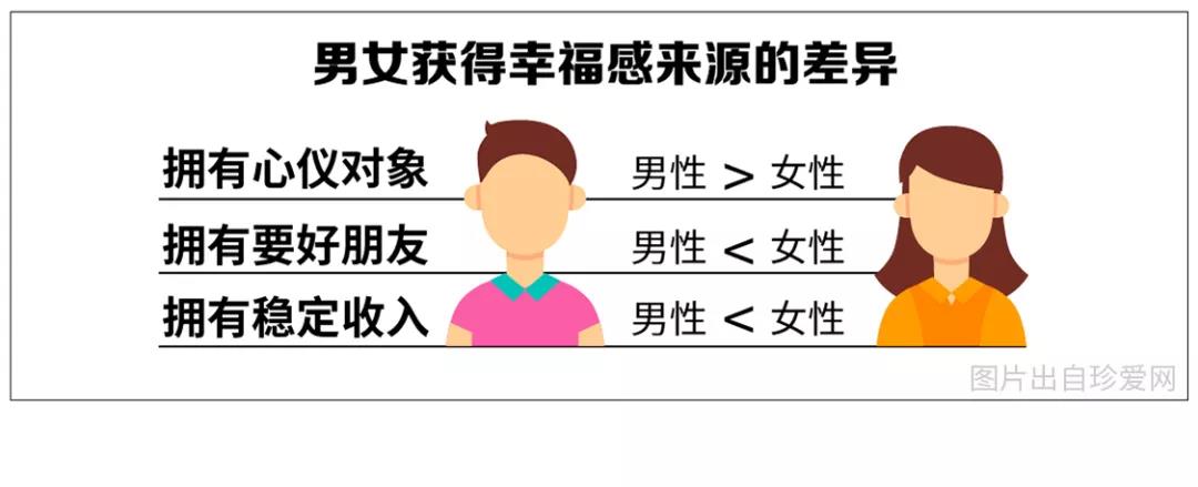 深入研究發(fā)現(xiàn),男性對(duì)“擁有心儀對(duì)象”的需求比例(6.67%)略高于女性(3.17%),女性則是在擁有要好朋友的比例(28.79%)上高于男性(6.67%),且因?yàn)榉€(wěn)定收入感到幸福的女性比例(60%)比男性(53%)更高??梢姡愿菀讖姆€(wěn)定的收入中獲得幸福感。