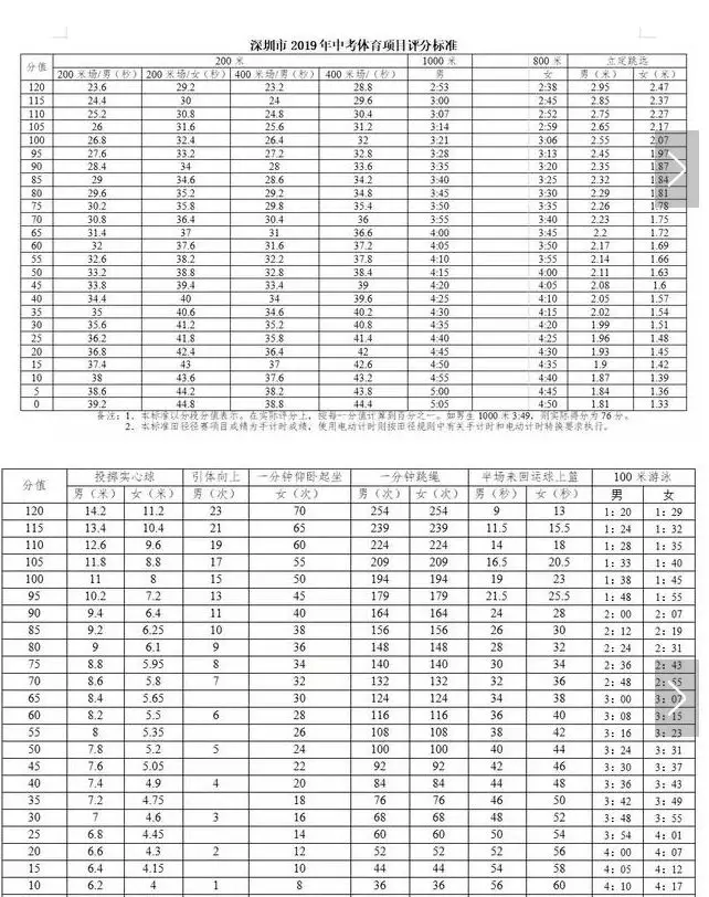 ▲深圳市2019年中考體育項(xiàng)目評分標(biāo)準(zhǔn)