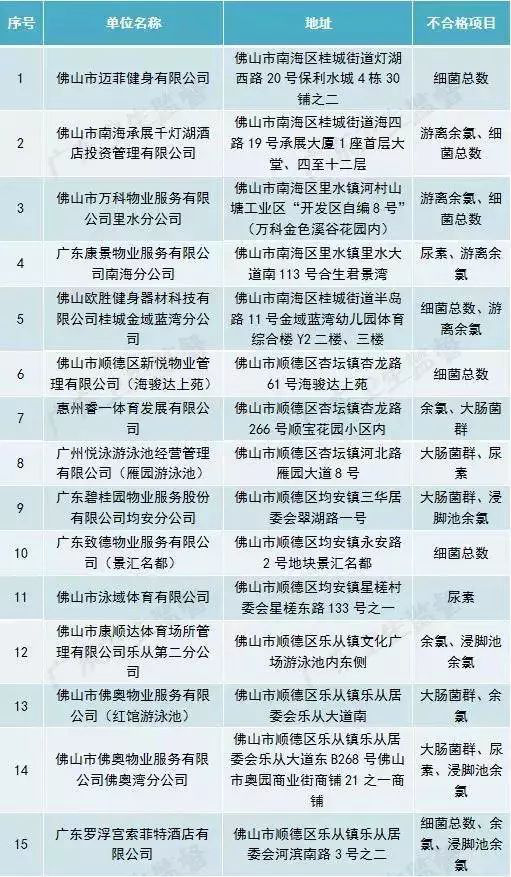 廣東省部分城市游泳場所水質(zhì)抽檢不合格場所名單(第一批)