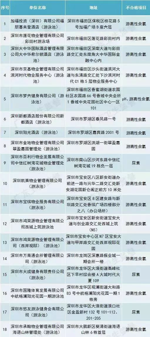 近日,廣東省部分城市游泳場(chǎng)所水質(zhì)抽檢情況第一批名單公布