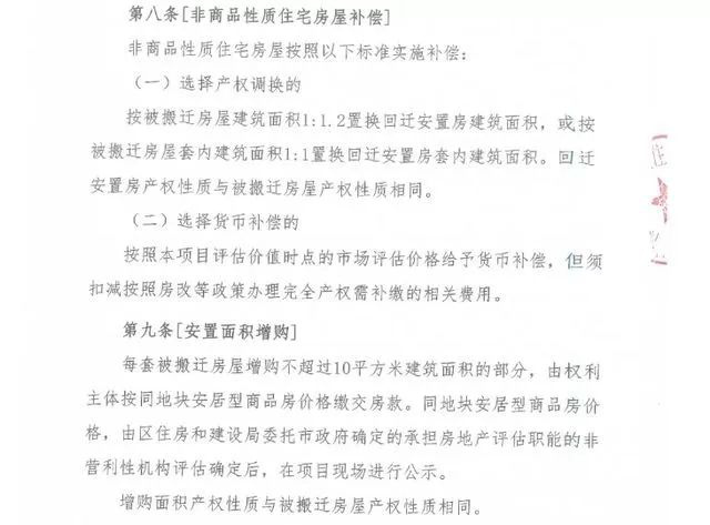 安置面積增購(gòu)方面,每套被搬遷房屋增購(gòu)不超過(guò)10平方米建筑面積的部分,由權(quán)利主體按同地塊安居型商品房?jī)r(jià)格繳交房款。