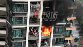火苗和黑煙不斷從陽(yáng)臺(tái)躥出
