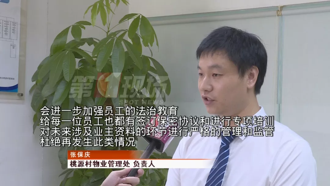 今天記者來到桃源小區(qū)物業(yè)管理處,負責(zé)人介紹稱在今年6月確實有兩名員工在工作期間被警方帶走,在事情發(fā)生后公司才得知兩名員工涉嫌泄漏業(yè)主個人資料。