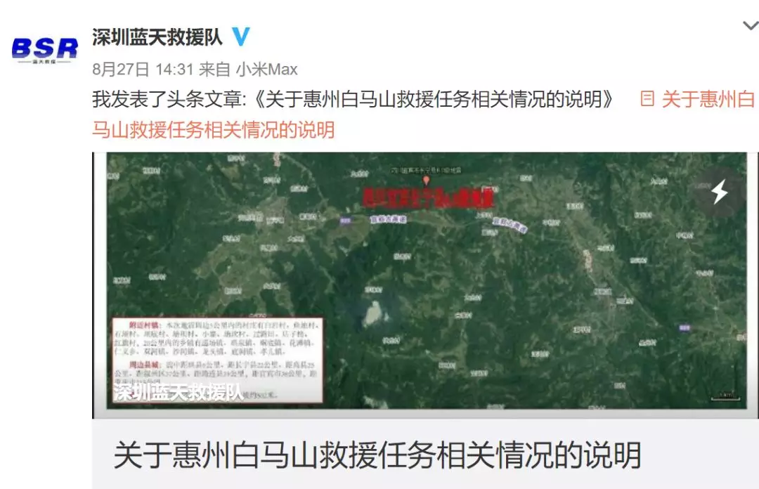 ▲深圳藍(lán)天救援隊官方微博通報接到求助