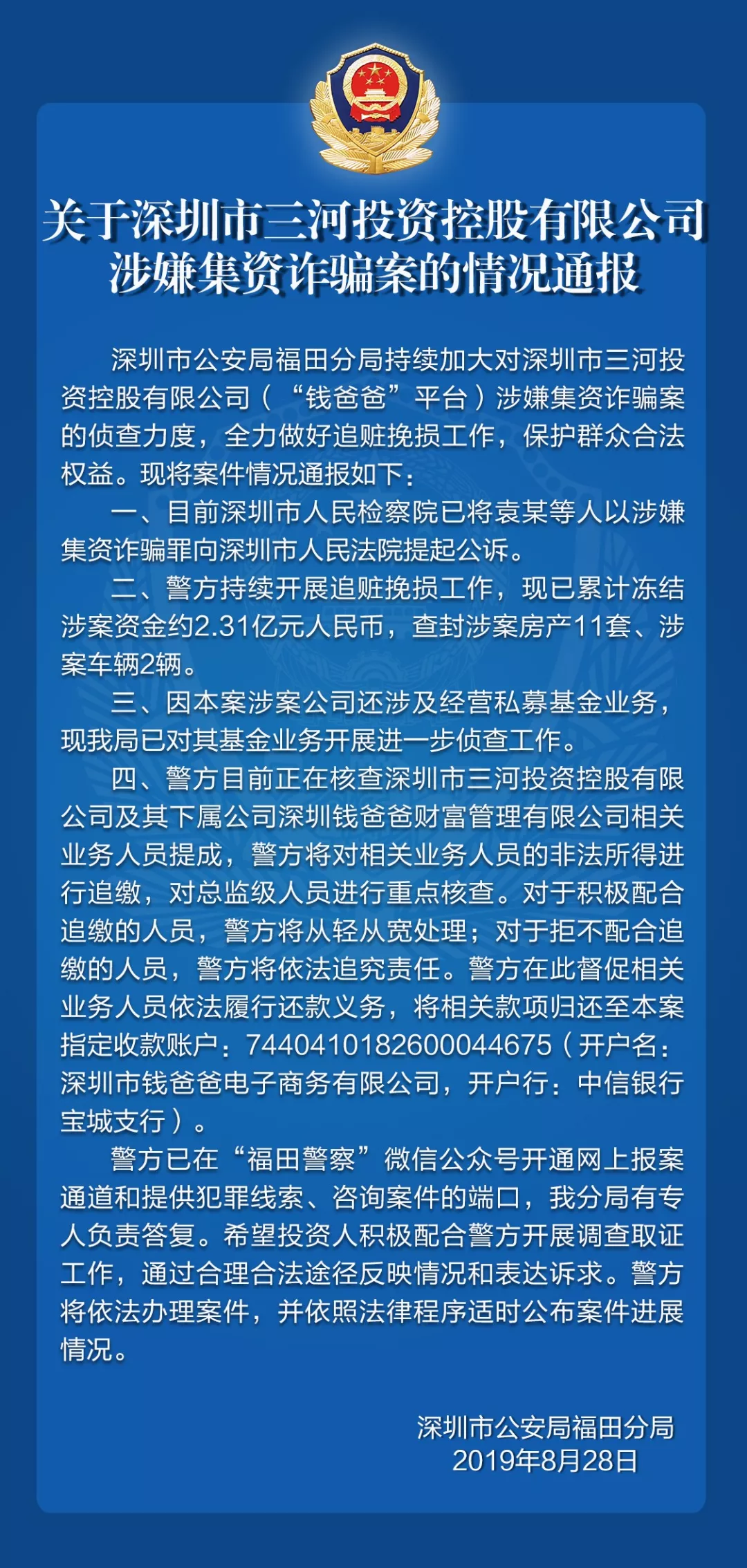關(guān)于深圳市三河投資控股有限公司、“智融會(huì)”平臺(tái)案件的情況通報(bào)