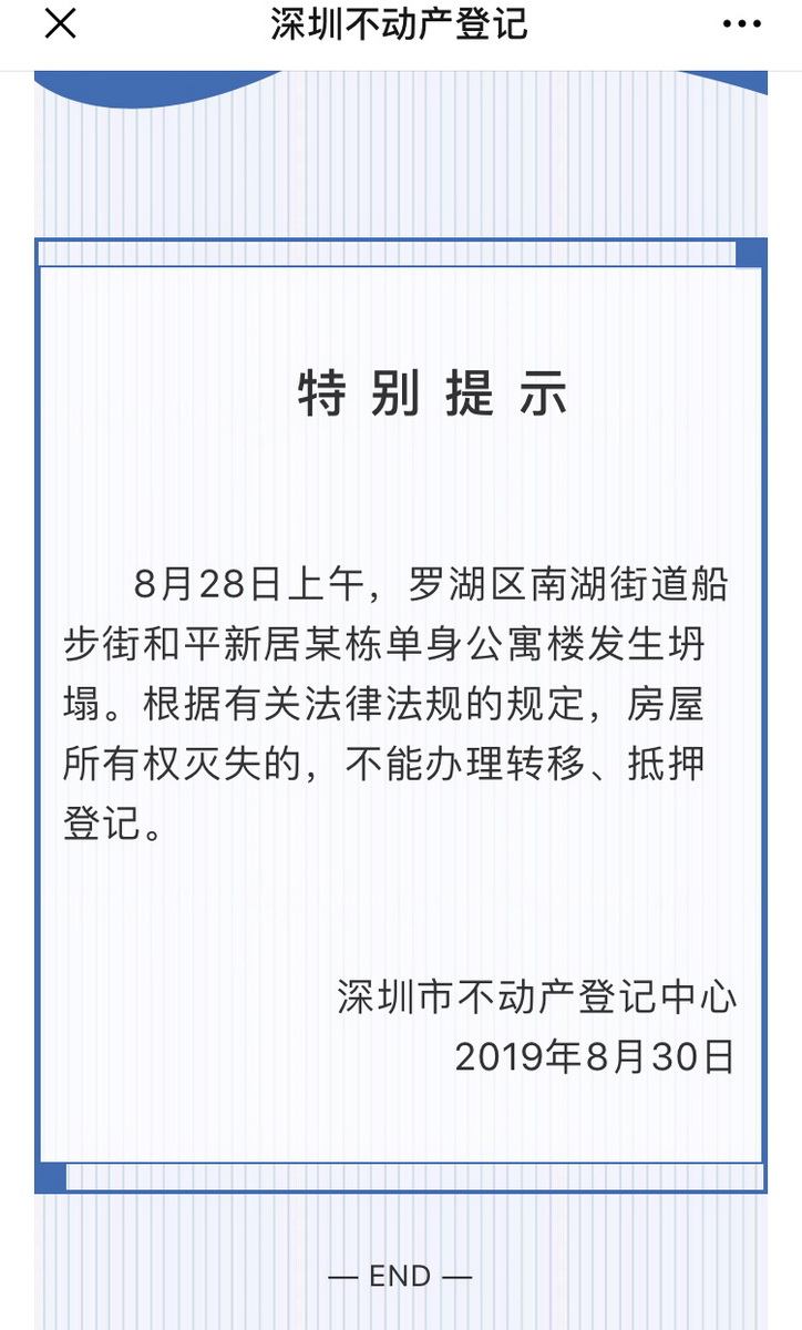 “拆遷已動工”“拆遷物業(yè)”“房子倒了,坐等拆遷”……28日,羅湖區(qū)和平新居單身公寓樓發(fā)生沉降傾斜。還沒了解清楚事情真相,朋友圈就開始傳出該小區(qū)“房價(jià)暴漲”的消息。據(jù)媒體報(bào)道,事故發(fā)生后,購房平臺顯示該公寓的房價(jià)暴漲高達(dá)100萬,連旁邊的鐵路小區(qū)也“沾了光”,坐地起價(jià),一套80多平的房子當(dāng)天猛漲30萬。
