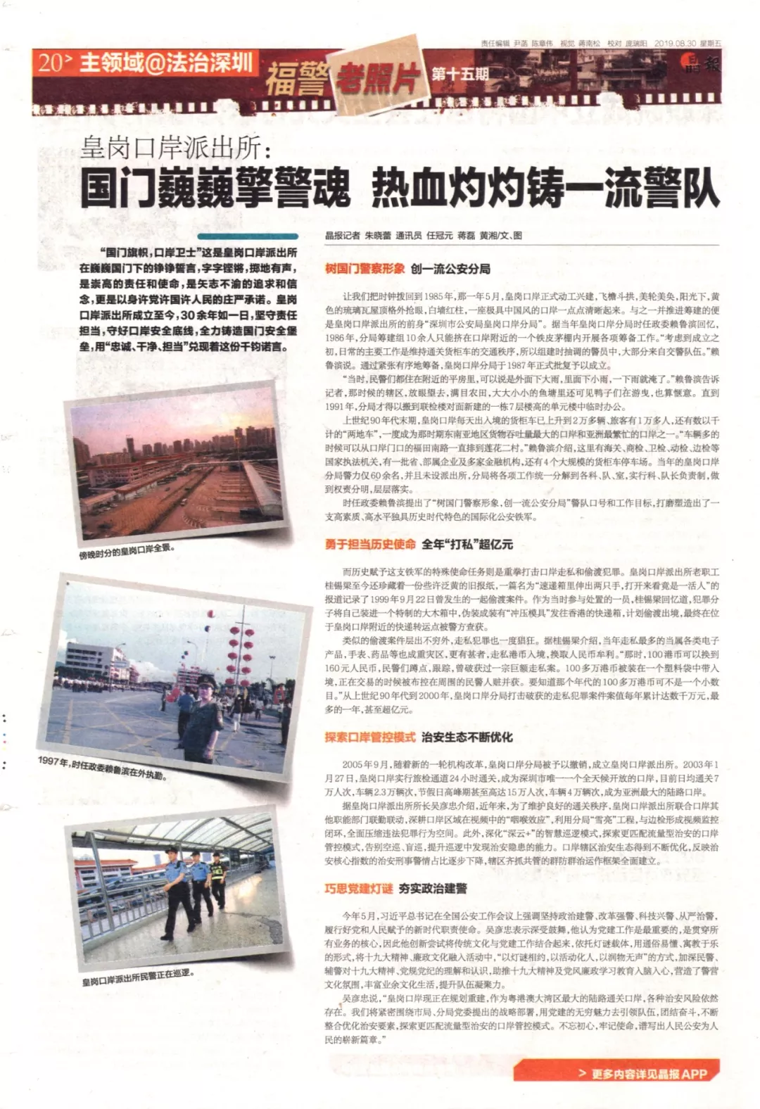 上世紀(jì)90年代末期,皇崗口岸每天出入境的貨柜車已上升到2萬多輛、旅客有1萬多人,還有數(shù)以千計(jì)的“兩地車”,一度成為那時期東南亞地區(qū)貨物吞吐量最大的口岸和亞洲最繁忙的口岸之一?!败囕v多的時候可以從口岸門口的福田南路一直排到蓮花二村?!辟圁敒I介紹,這里有海關(guān)、商檢、衛(wèi)檢、動檢、邊檢等國家執(zhí)法機(jī)關(guān),有一批省、部屬企業(yè)及多家金融機(jī)構(gòu),還有4個大規(guī)模的貨柜車停車場。當(dāng)年的皇崗口岸分局警力僅60余名,并且未設(shè)派出所,分局將各項(xiàng)工作統(tǒng)一分解到各科、隊(duì)、室,實(shí)行科、隊(duì)長負(fù)責(zé)制,做到權(quán)責(zé)分明,層層落實(shí)。