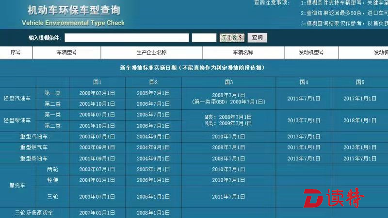 此外,2017年1月1日前生產(chǎn)的或進口的機動車可通過登錄機動車環(huán)保網(wǎng)網(wǎng)站自助查詢排放標(biāo)準(zhǔn)信息。2017年1月1日后生產(chǎn)的或進口的機動車以該車的《環(huán)保信息隨車清單》為準(zhǔn),清單上已備注該車的排放標(biāo)準(zhǔn),同時清單上也有二維碼,通過掃描二維碼的結(jié)果可判斷該清單內(nèi)容是否屬實;如無《環(huán)保信息隨車清單》,可通過機動車環(huán)保信息公開平臺查詢(http://219.141.229.209/ve/vin/index)。