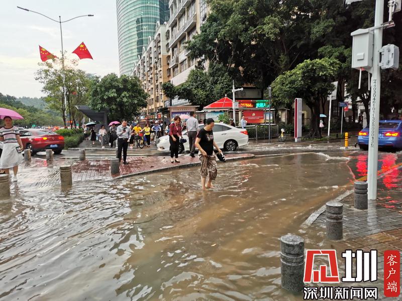 一場(chǎng)急雨過(guò)后,深圳景田萬(wàn)科金色家園門口積水較為嚴(yán)重。
