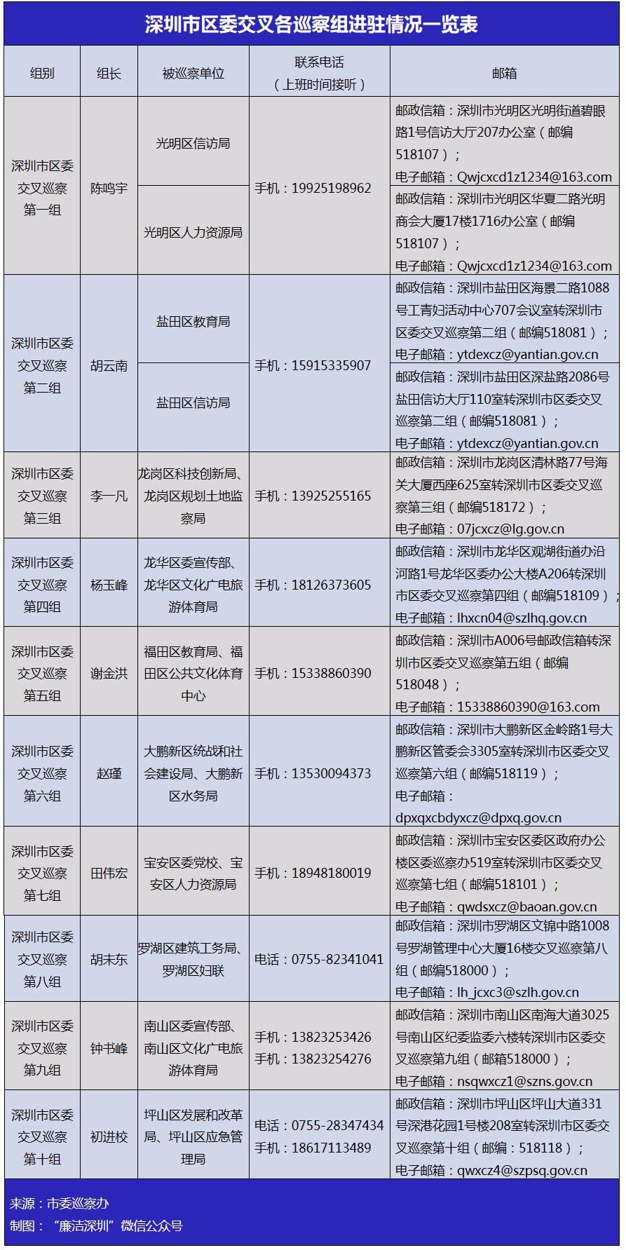 此外,2019年第二輪區(qū)級交叉巡察進駐也已全部完成。10個交叉巡察組將對福田區(qū)教育局黨組等20個單位黨組織開展異地(跨區(qū))交叉巡察。