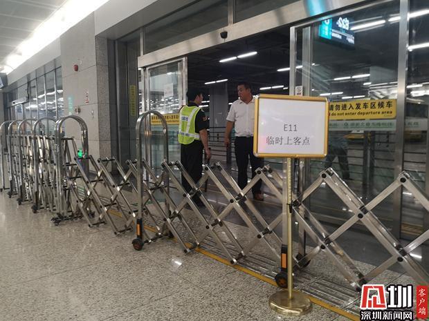 由于事故,記者在現(xiàn)場(chǎng)看到E11線公交車(chē)臨時(shí)上車(chē)點(diǎn)更改