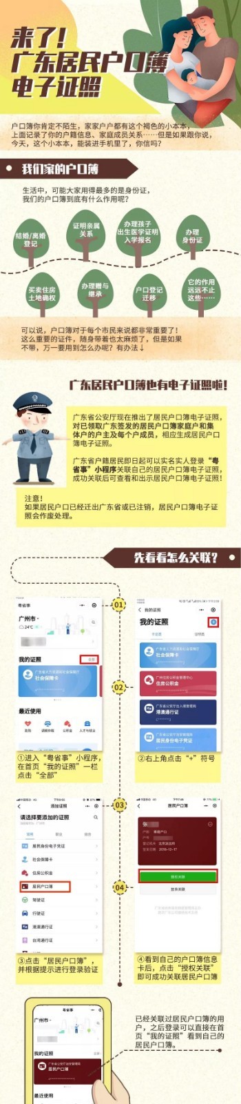 廣東省公安廳此次推出居民戶口簿電子證照,對(duì)于已經(jīng)領(lǐng)取廣東簽發(fā)的戶口簿家庭戶和集體戶的戶主及每個(gè)戶成員,都相應(yīng)生成居民戶口簿電子證照。需要注意的是,如果居民戶口已經(jīng)遷出廣東省或已注銷(xiāo),居民戶口簿電子證照會(huì)作廢處理。