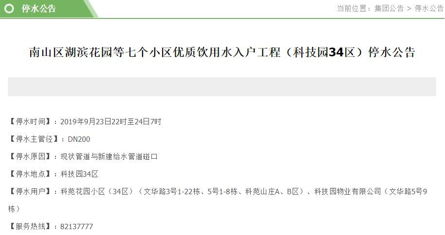 見圳客戶端?深圳新聞網2019年9月22日訊 近日,深圳水務集團官網陸續(xù)發(fā)布停水公告。深圳新聞網記者了解到,9月23-24日,福田、南山、羅湖等區(qū)的多個小區(qū)和企業(yè)單位將受影響,請市民提前做好儲水準備。