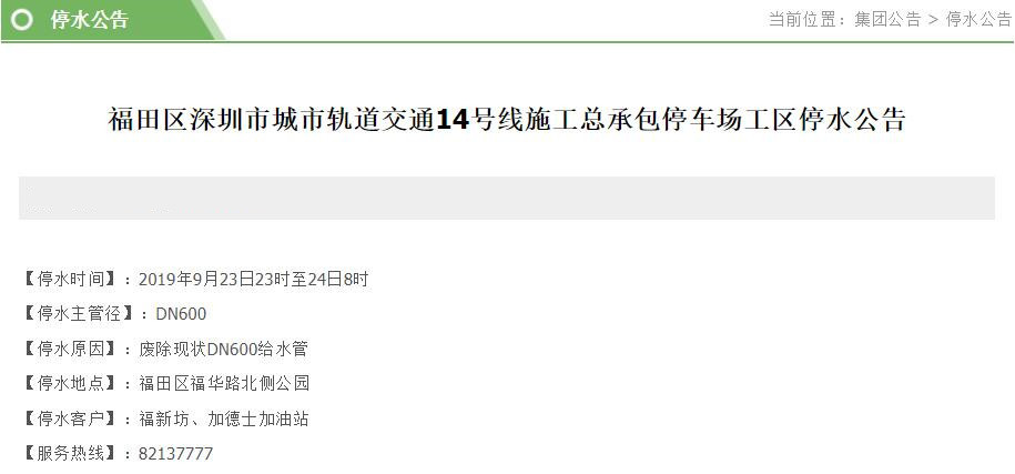 停水客戶:高發(fā)城馳,石廈變電站,共和世家,廣深港皇崗工地,福樂雅苑,皇崗公園