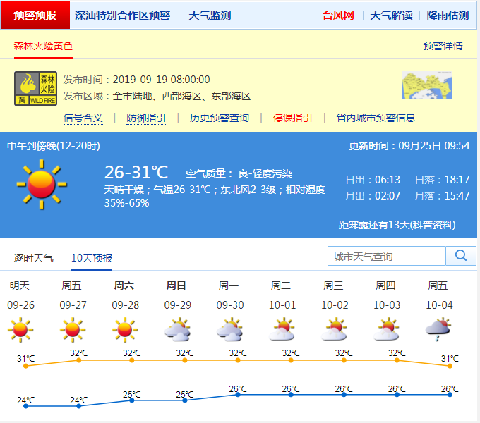 見(jiàn)圳客戶(hù)端?深圳新聞網(wǎng)2019年9月25日訊 今天上班路上,小涼風(fēng)嗖嗖吹著,恍然有種入秋的感覺(jué)。一直停留在夏天不肯走的深圳終于有了準(zhǔn)備入秋的預(yù)兆?這個(gè)你就想太多了,根據(jù)氣象學(xué)上入秋的標(biāo)準(zhǔn),連續(xù)五天滑動(dòng)平均氣溫穩(wěn)定<22 ℃,從第一天開(kāi)始便進(jìn)入到氣象學(xué)意義上,真正的秋天。所以,你眼前的"秋"不是秋!深圳平均入秋月份為11月(深圳平均入秋時(shí)間11月3日,2018年入秋時(shí)間為11月22日)。