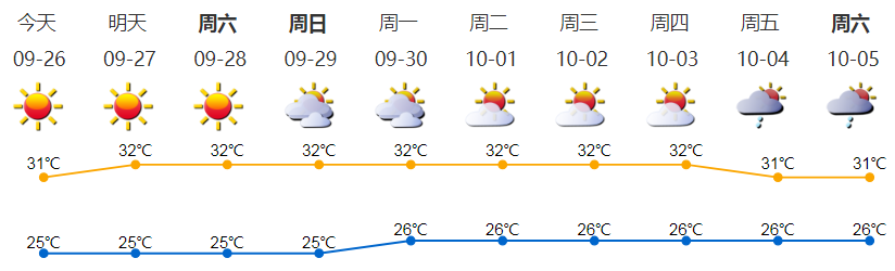 晴天干燥;氣溫25-31℃;東北風(fēng)2-3級(jí);相對(duì)濕度40%-80%。