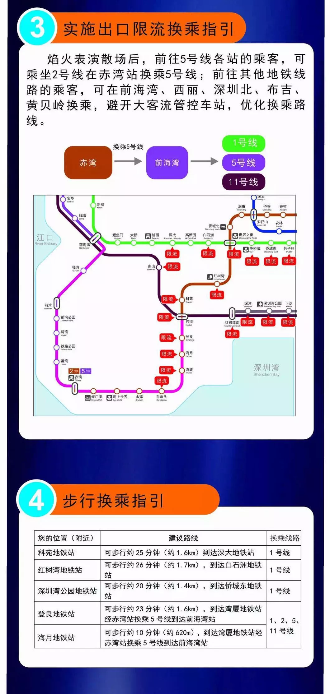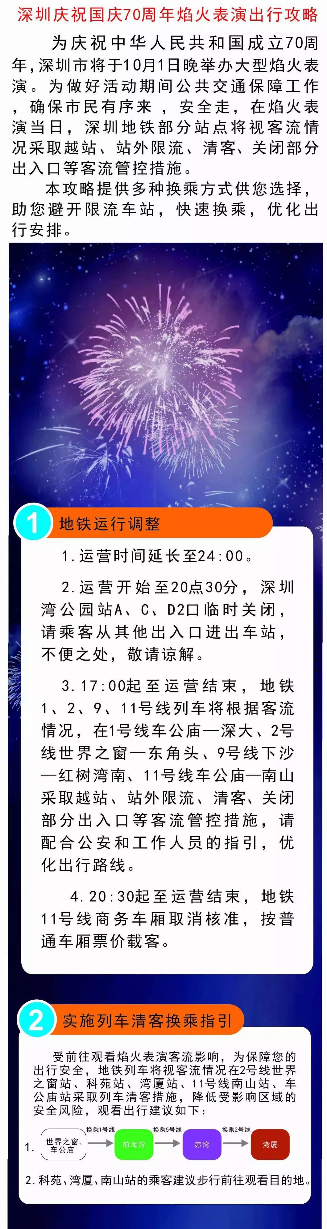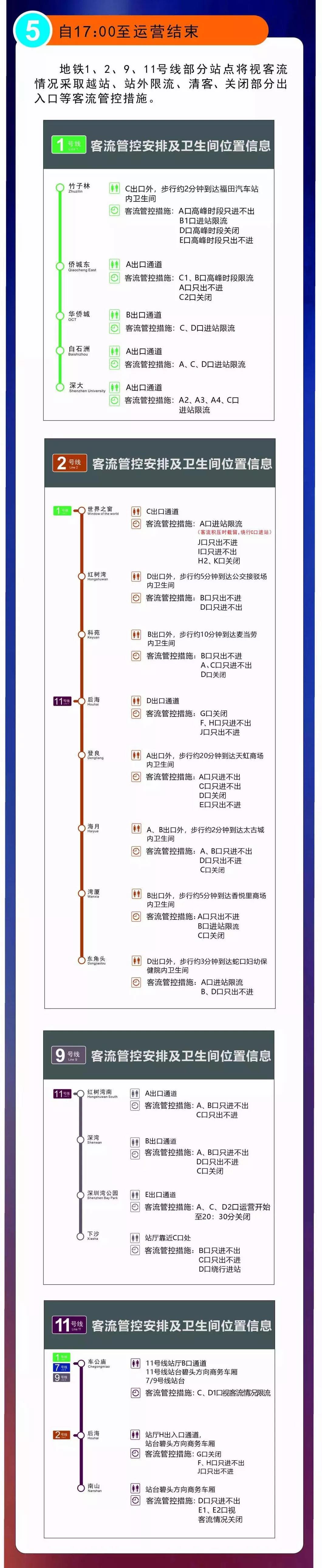 2號(hào)線世界之窗、科苑、灣廈站,11號(hào)線南山站、車公廟站將視客流情況采取列車清客。