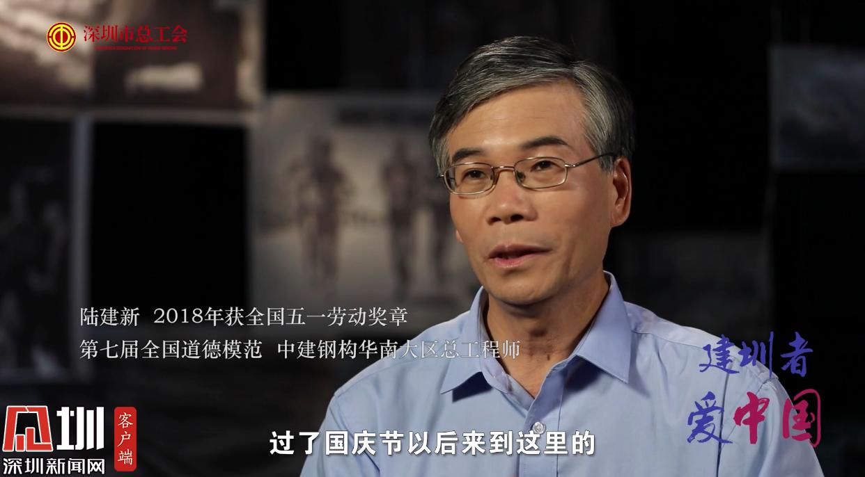 中建鋼構(gòu)華南大區(qū)總工程師陸建新于2018年獲得全國五一勞動(dòng)獎(jiǎng)?wù)拢彩堑谄邔萌珖赖履7丁?8歲就已來到深圳參與國貿(mào)大廈建造的他,談及在深圳奮斗的歷程時(shí),幾乎是熱淚盈眶。