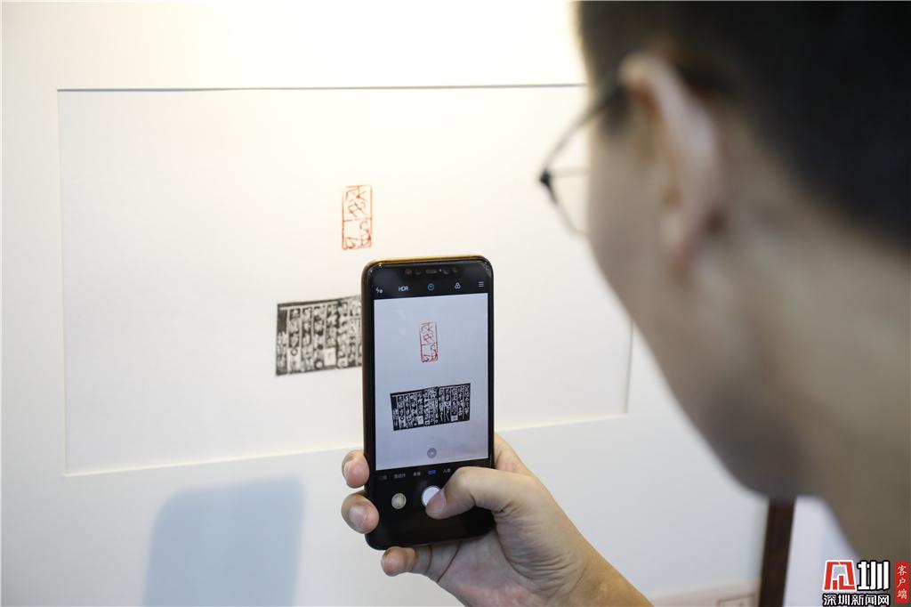 一位參觀者拿起手機(jī)拍下展覽作品