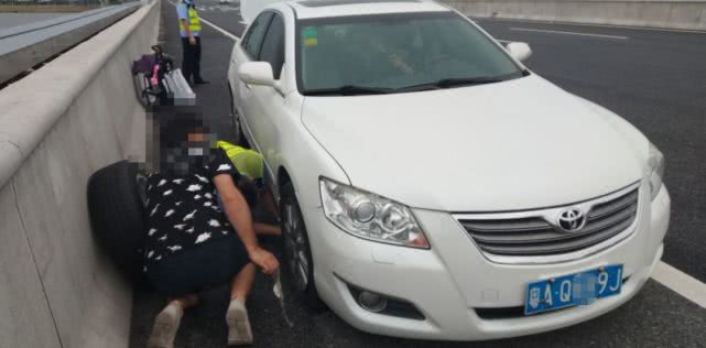 10月5日下午4點多,珠海交警郭警官開著警車在珠三角環(huán)線高速巡邏時,看到有一輛粵AQ××9J號白色豐田小車停靠在應(yīng)急車道上,打著雙閃。郭警官立即上前詢問情況,原來小車剛上高速沒多久就爆胎了,司機深知在高速停下來很危險,急得團團轉(zhuǎn),天還下起了小雨。